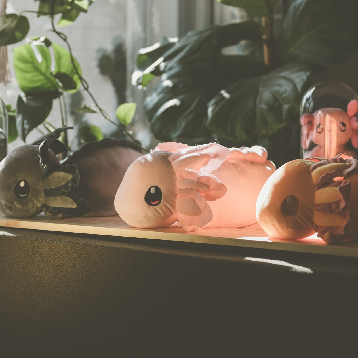 Our first ever foray into plushies, classic axol and friends plushies featuring axol the axoltol, java the pangolin, & Mr. Cactus with his family!